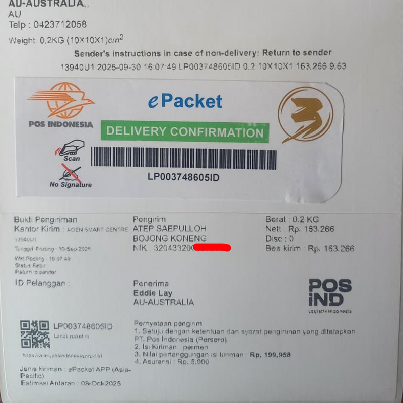 We ship internationally using trusted carriers including FedEx, DHL, and Pos Indonesia, ensuring reliable delivery, secure handling, and tracking for every shipment.
